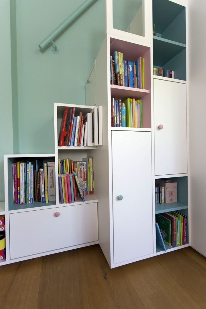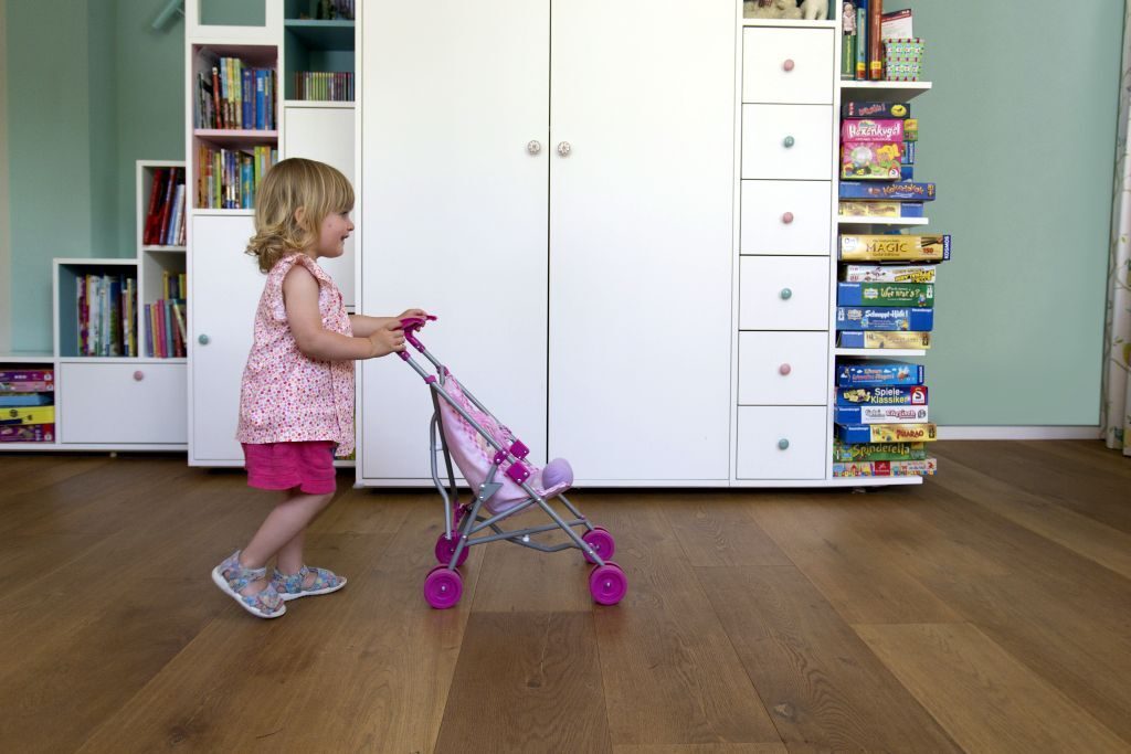 Für eine Familie in Potsdam gestalteten wir Träume in Wirklichkeiten um. Die Schlafräume der Großen wie der Kleinen. Ein gestepptes Bett in weichem Samtgrau für die Eltern. Ein Hochbett mit integriertem Kleiderschrank für die Prinzessinnen des Hauses. Ebenso das Kinderbad mit Waschtisch-Unterschrank und Spiegel im Entenformat.